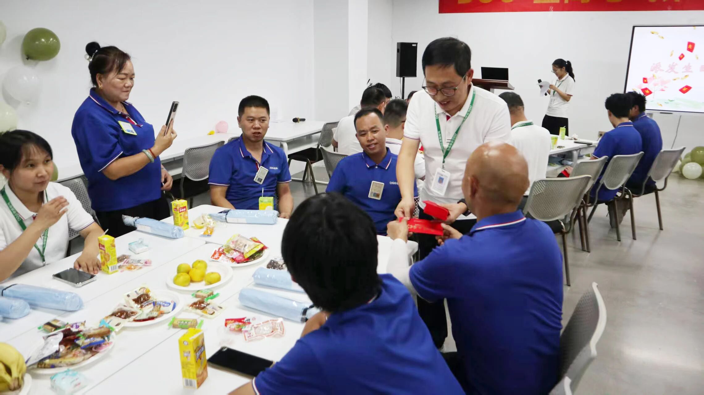 步入现场,生日主题横幅与缤纷装饰相映成趣,往日严谨的培训室,此刻化作一片暖意涌动的欢乐海洋,为大家忙碌的工作间隙带来片刻的轻松与惊喜。