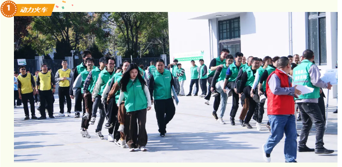 “动力火车”项目中,队员们以身为链、肩手相连,用整齐划一的步伐勾勒团队默契,诠释了“上下同心,其利断金”的团队力量。