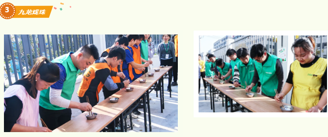 “九龙戏珠”环节中,队员们眼疾手快,或精准夹取,或巧妙拨弹,争分夺秒地将珠子“运”到碗中,现场加油声此起彼伏。